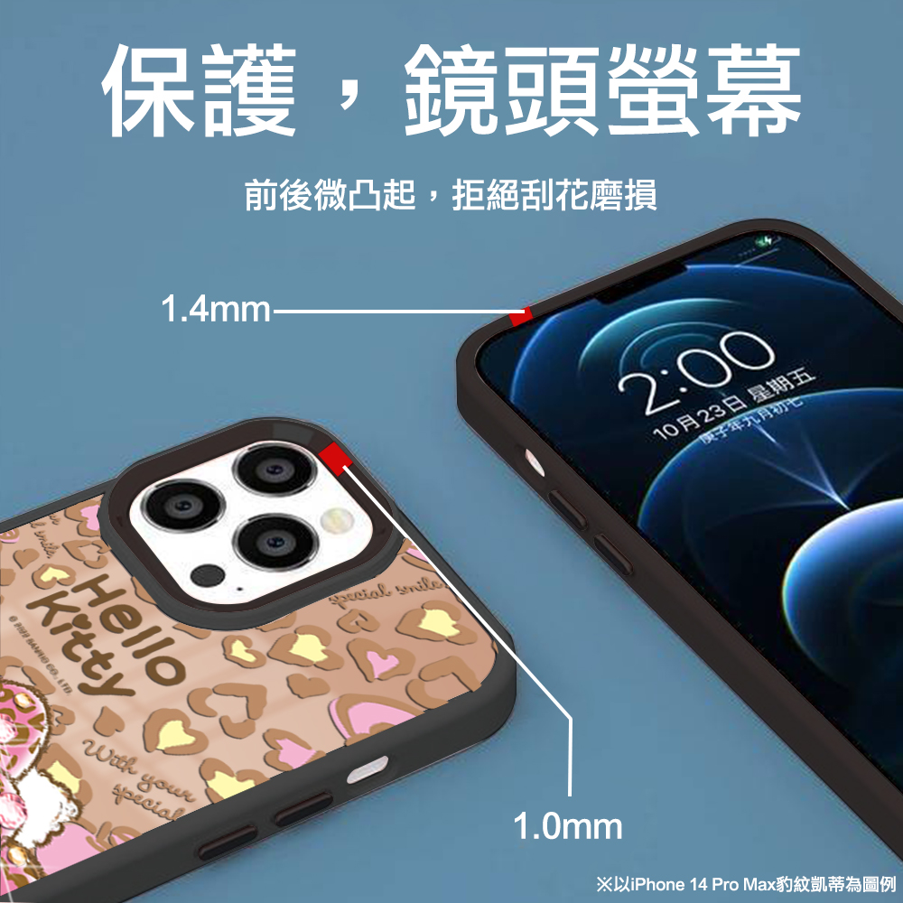 三麗鷗 軍規防摔鋁合金鏡頭框鏡面手機殼-豹紋凱蒂-黑框(S24/S23系列)