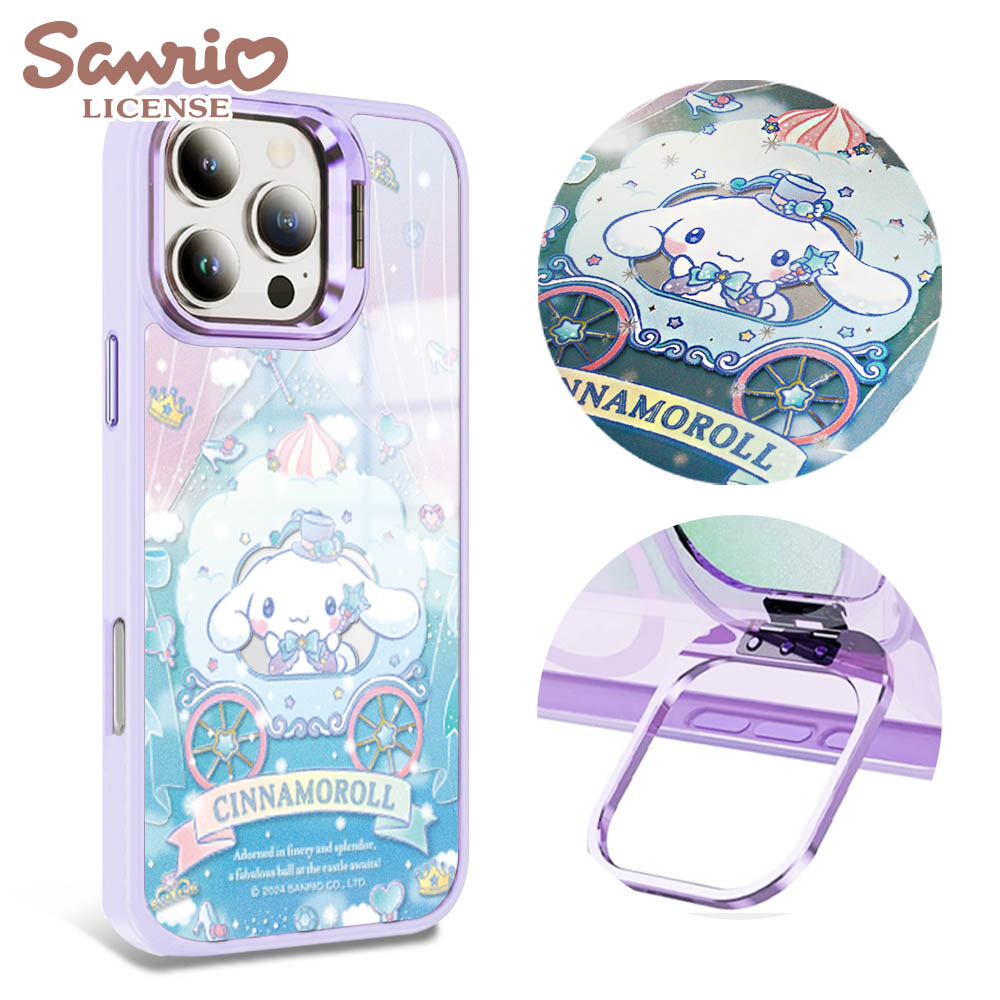三麗鷗 軍規防摔合金框隱形立架鏡面磁吸手機殼-馬車大耳狗-紫框(iPhone 17/16/15/14/13系列)