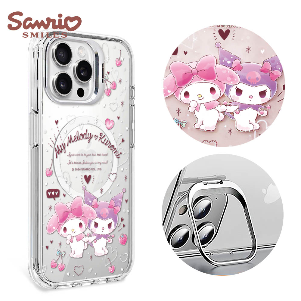 三麗鷗 防震雙料隱形立架磁吸手機殼-花語雙子星(iPhone 17/16/15/14/13/12系列)