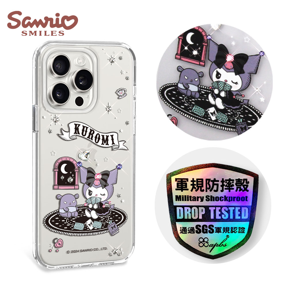 三麗鷗輕薄軍規防摔水晶彩鑽手機殼-夜市酷洛米(iPhone 17/16/15系列)