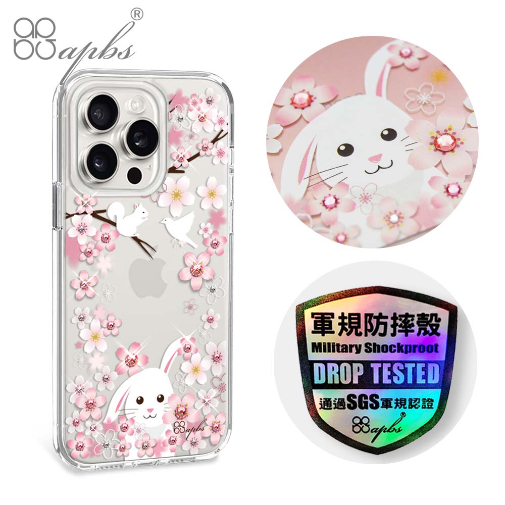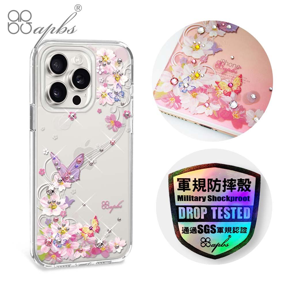 apbs輕薄軍規防摔水晶彩鑽手機殼-櫻飛雪(iPhone 17/16/15系列)