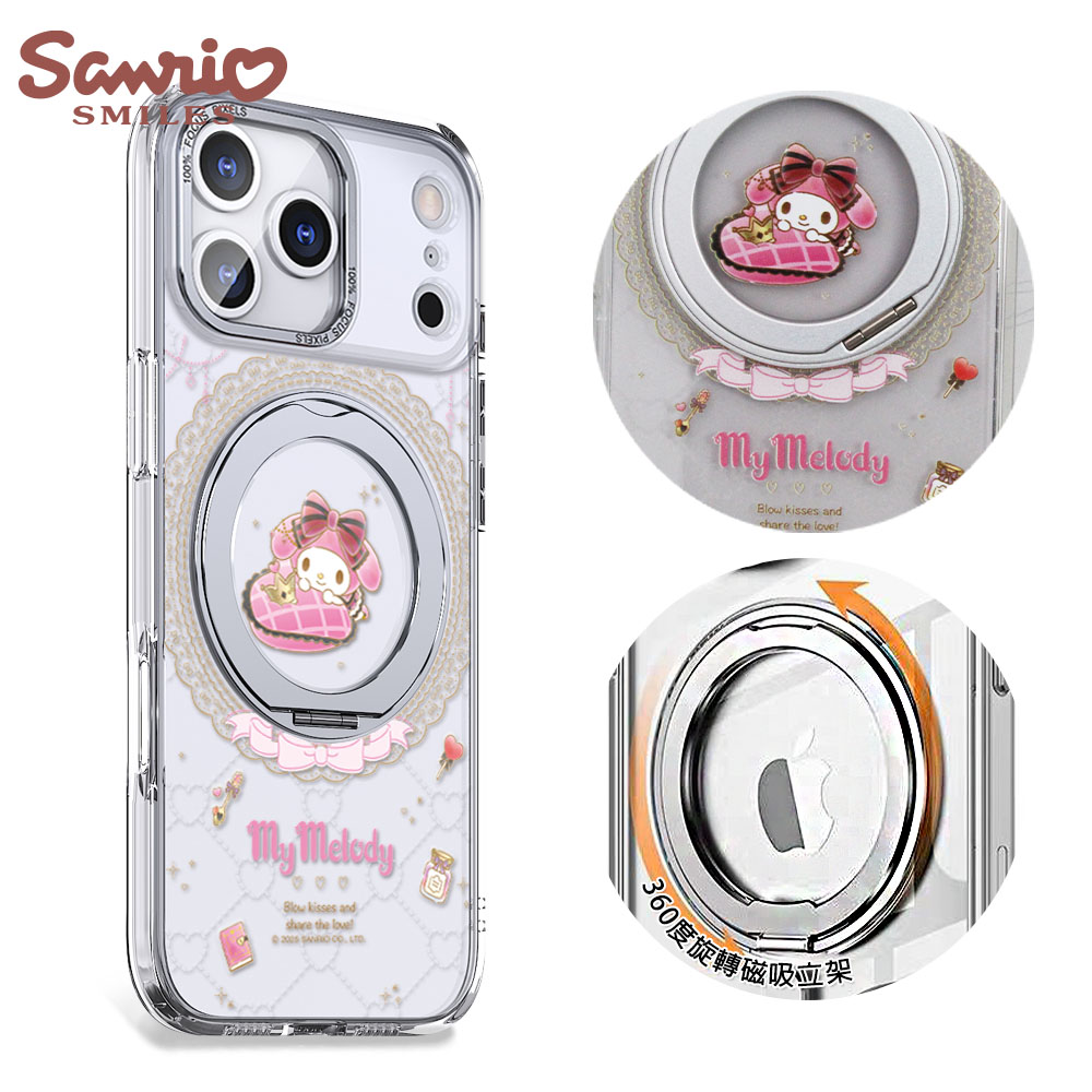 三麗鷗 抗黃化磁吸金屬框隱形立架殼-花語美樂蒂-電鍍銀(iPhone 16/15/14/13系列)