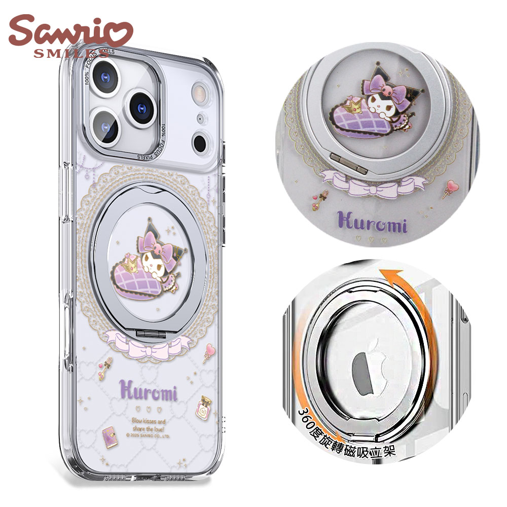 三麗鷗 抗黃化磁吸金屬框隱形立架殼-花語庫洛米-電鍍紫(iPhone 16/15/14/13系列)