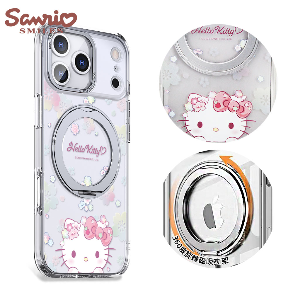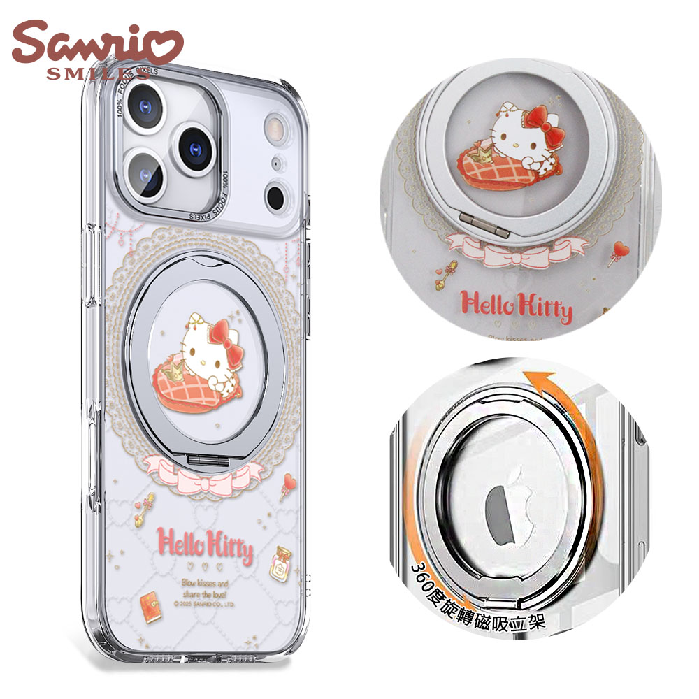 三麗鷗 防震雙料隱形立架磁吸手機殼-花語凱蒂(iPhone 17/16/15/14/13/12系列)
