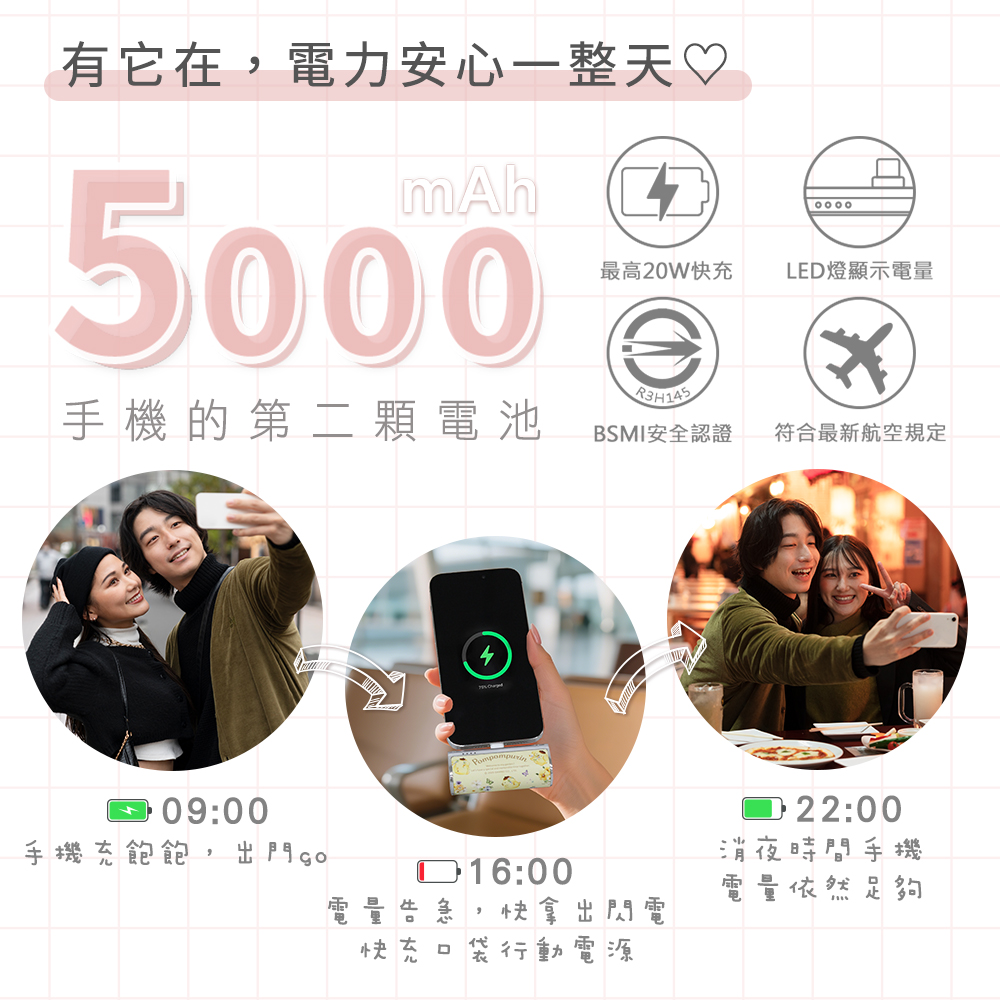 三麗鷗 閃電快充口袋行動電源 5000mAh-花語系列