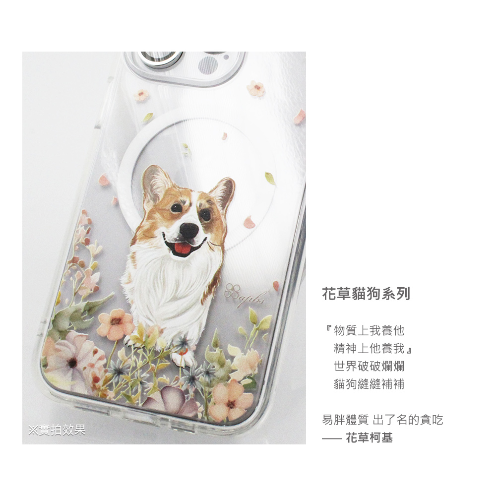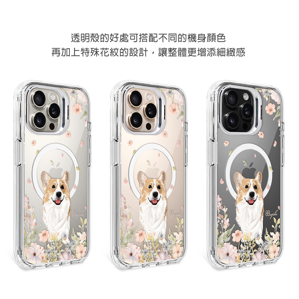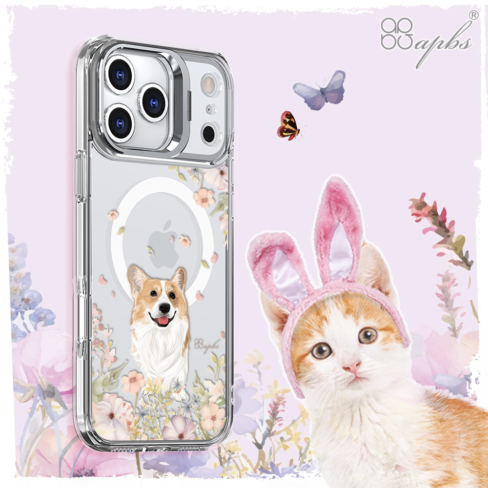 apbs 防震雙料隱形立架磁吸手機殼-花草柯基(iPhone 17/16/15/14/13/12系列)