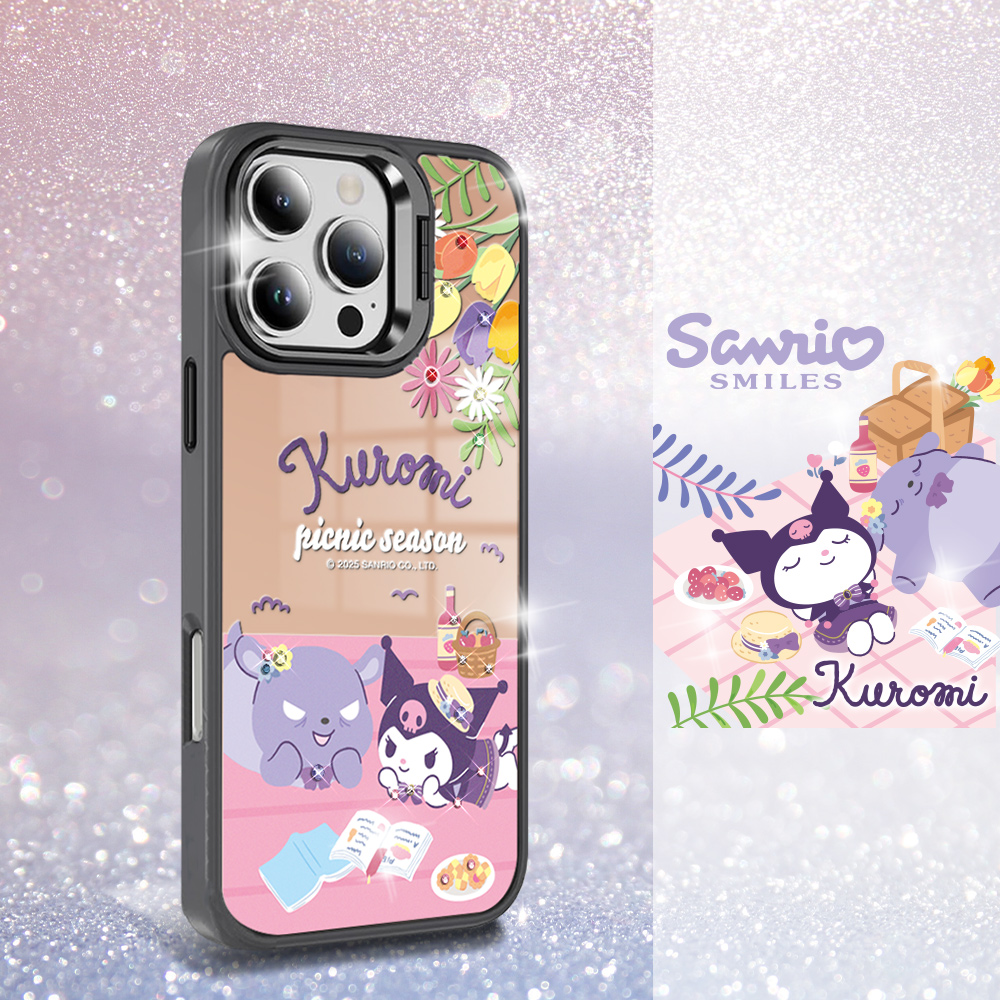 > 商品專區 > 三麗鷗 > 合金框隱形立架彩鑽鏡面 > 三麗鷗 軍規防摔合金框隱形立架鏡面彩鑽手機殼-野餐酷洛米A-黑框(iPhone 17/16/15/14/13系列)