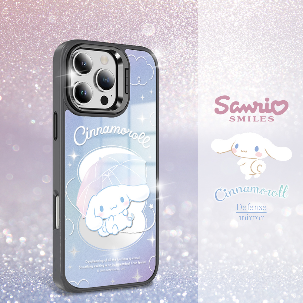 三麗鷗 軍規防摔合金框隱形立架鏡面磁吸手機殼-蒼穹大耳狗E-黑框(iPhone 17/16/15/14/13系列)
