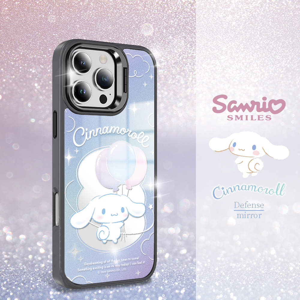 三麗鷗 軍規防摔合金框隱形立架鏡面磁吸手機殼-蒼穹大耳狗A-黑框(iPhone 17/16/15/14/13系列)