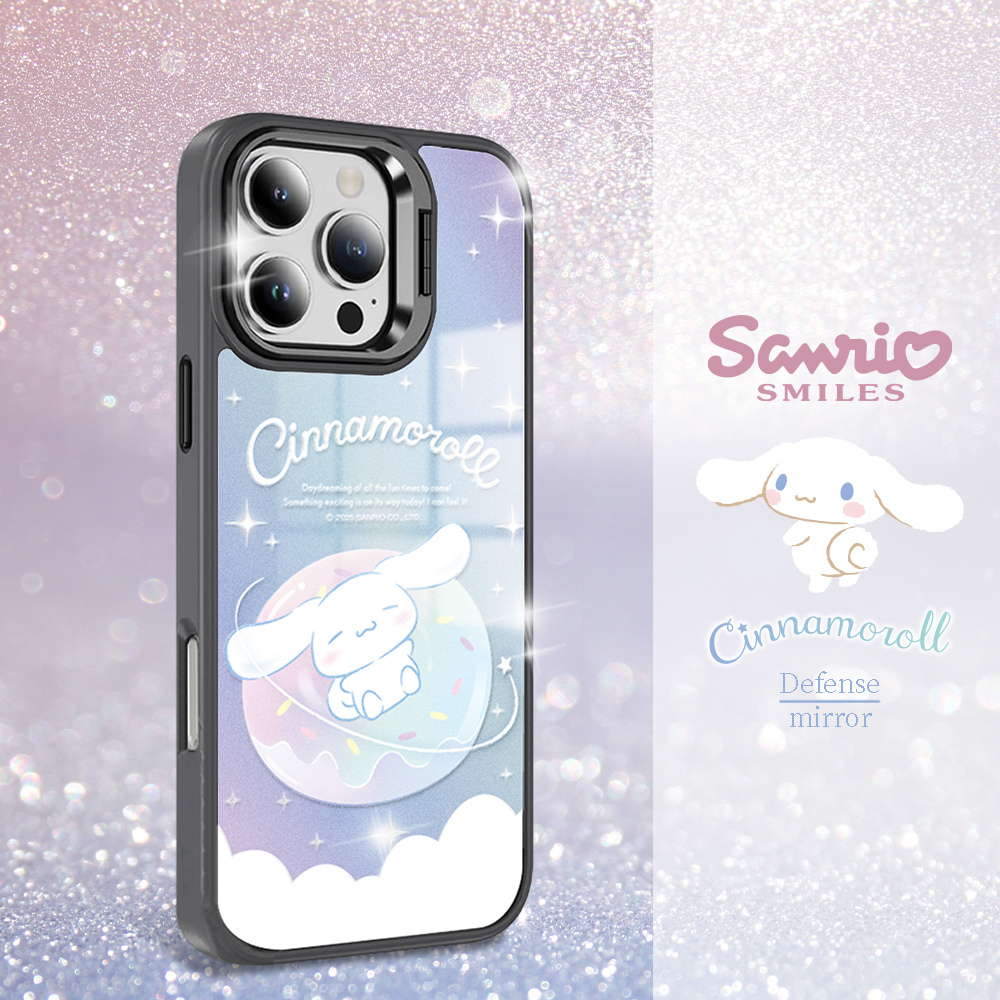 三麗鷗 軍規防摔合金框隱形立架鏡面磁吸手機殼-蒼穹大耳狗A-黑框(iPhone 17/16/15/14/13系列)