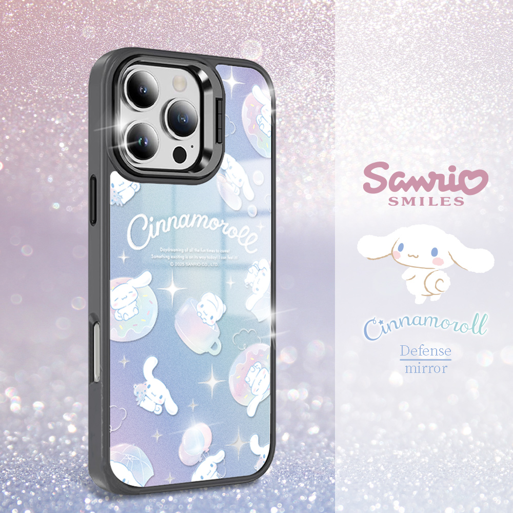 三麗鷗 軍規防摔合金框隱形立架鏡面磁吸手機殼-蒼穹大耳狗C-黑框(iPhone 17/16/15/14/13系列)