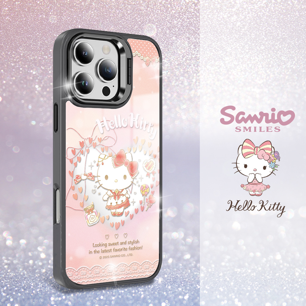 > 商品專區 > 三麗鷗 > 合金框隱形立架磁吸鏡面 > 三麗鷗 軍規防摔合金框隱形立架鏡面磁吸手機殼-甜心凱蒂-黑框(iPhone 17/16/15/14/13系列)
