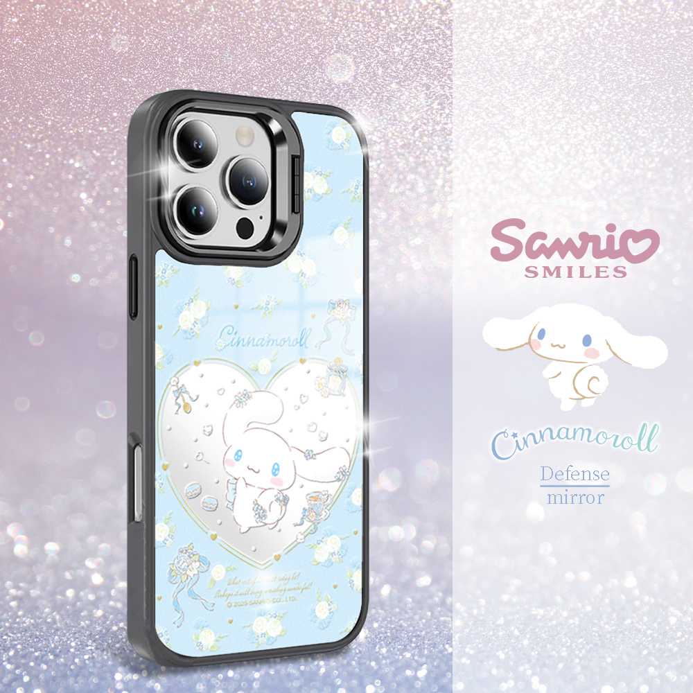 三麗鷗 軍規防摔合金框隱形立架鏡面磁吸手機殼-蒼穹大耳狗C-黑框(iPhone 17/16/15/14/13系列)