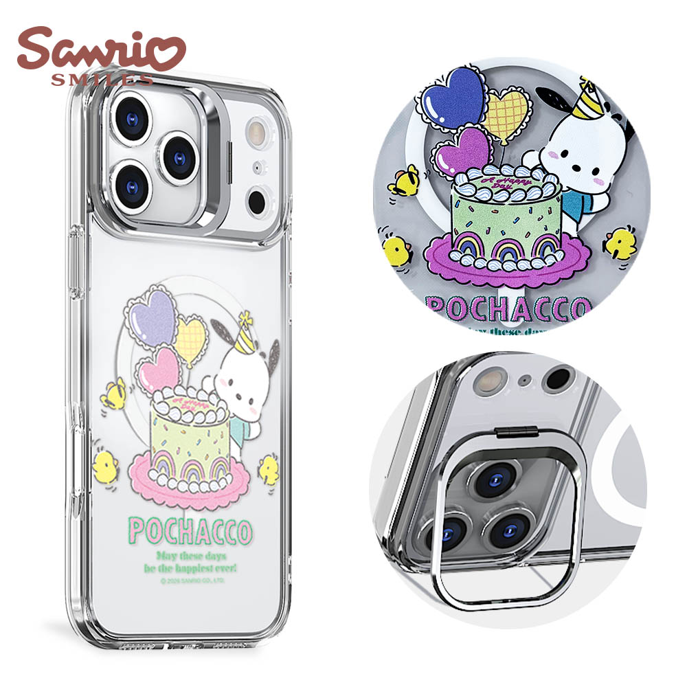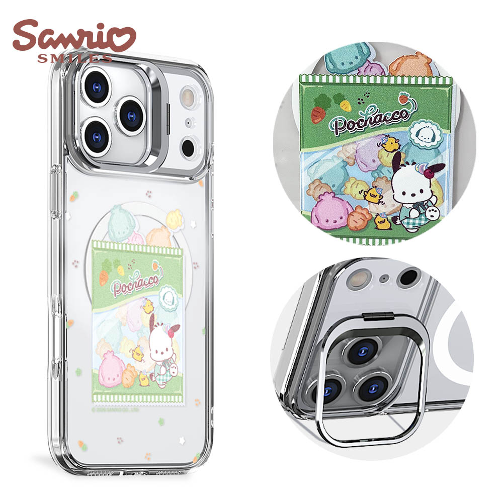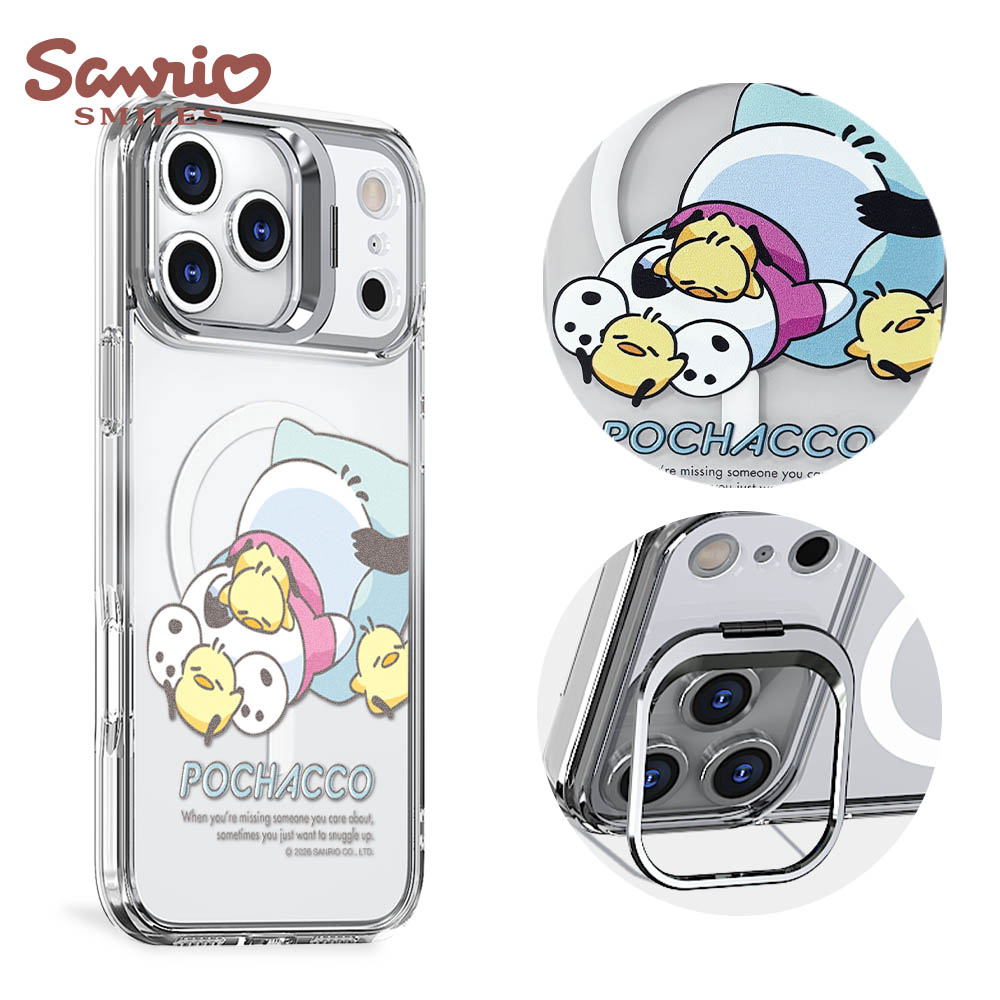 三麗鷗 抗黃化磁吸金屬框隱形立架殼-花語美樂蒂-電鍍銀(iPhone 16/15/14/13系列)
