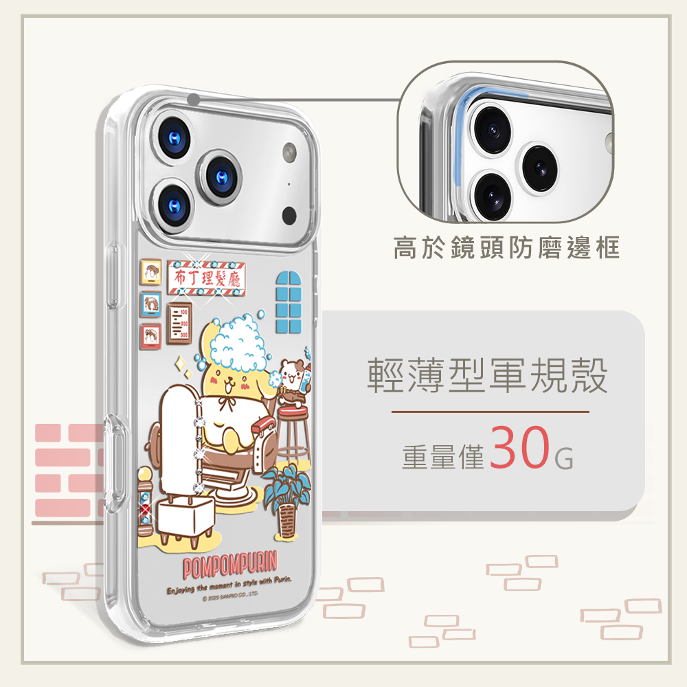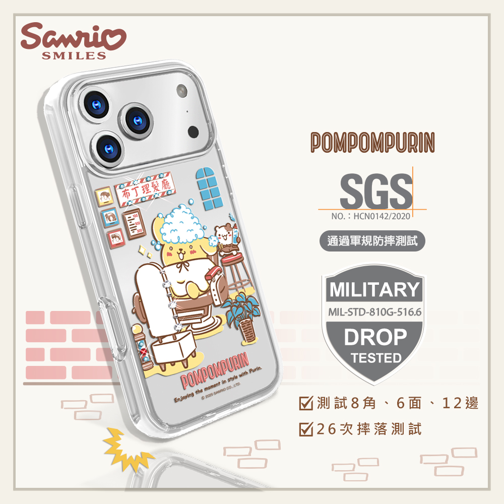 > 商品專區 > 三麗鷗 > 軍規鑽殼 > 三麗鷗輕薄軍規防摔水晶彩鑽手機殼-理髮布丁狗(iPhone 17/16/15系列)