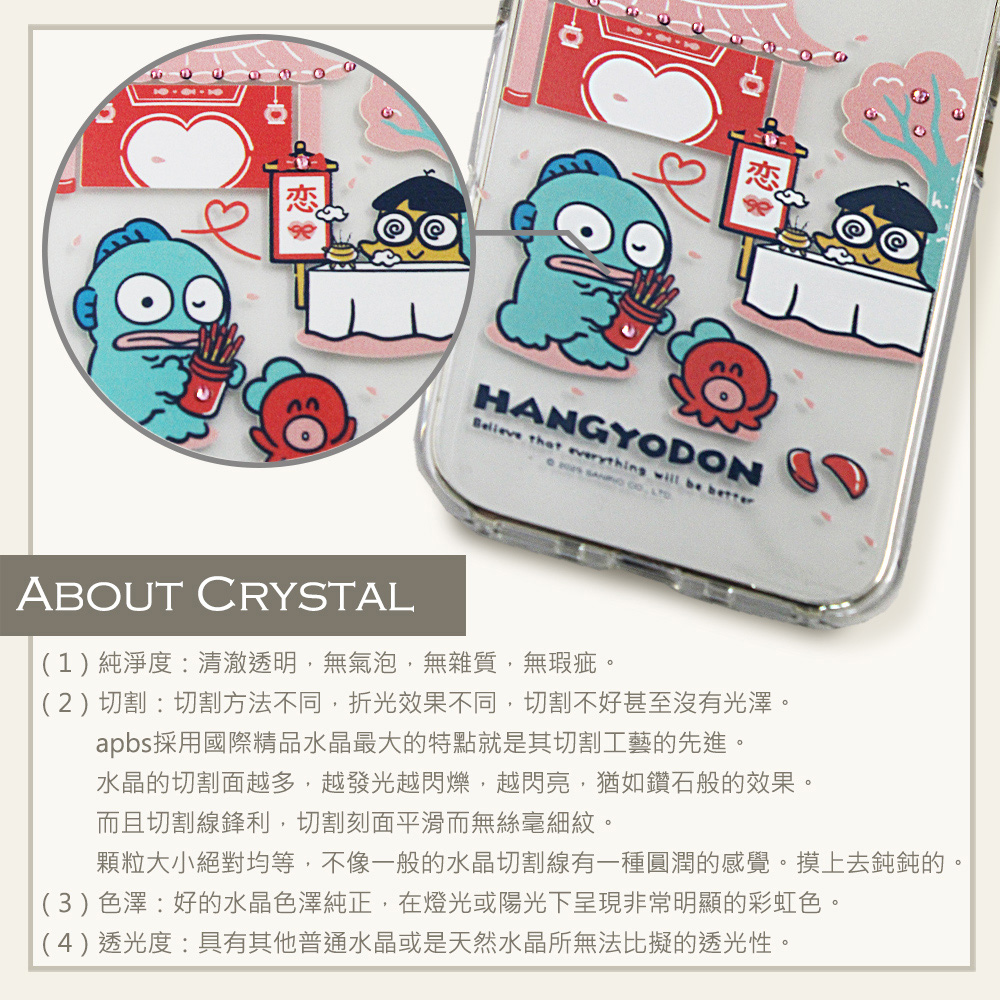 三麗鷗輕薄軍規防摔水晶彩鑽手機殼-刨冰漢頓(iPhone 17/16/15系列)