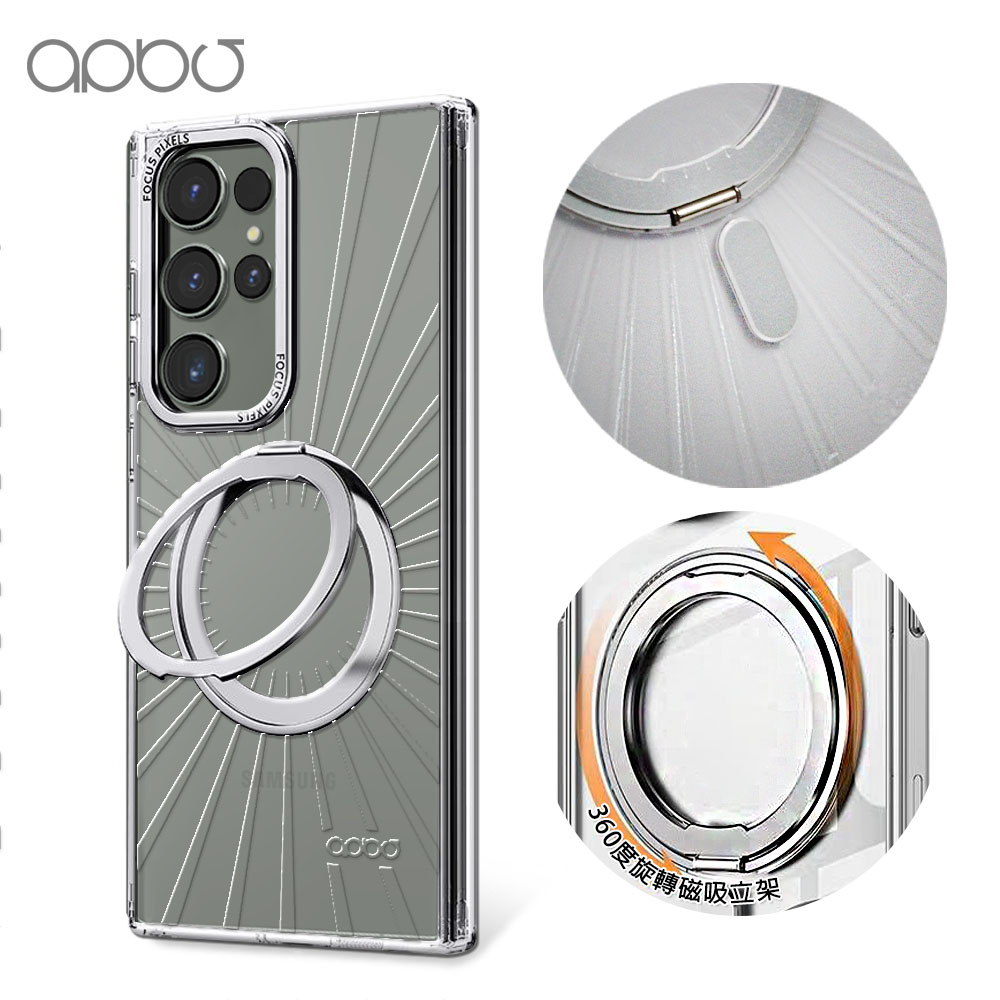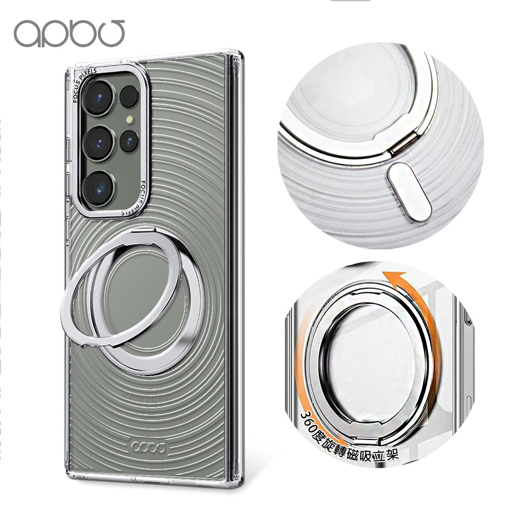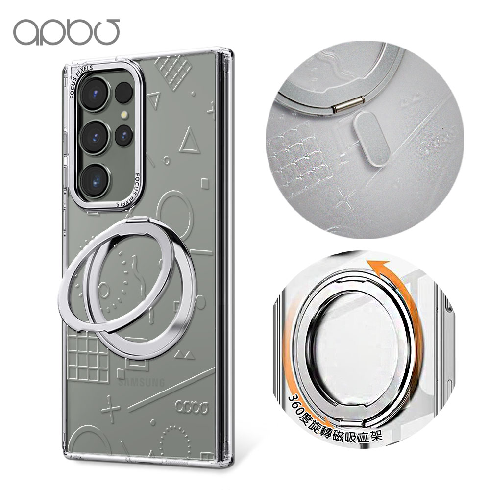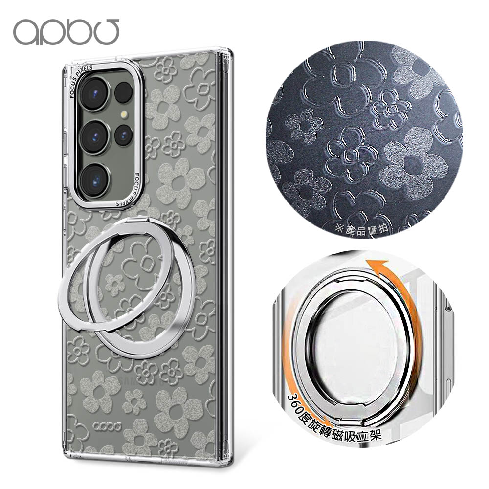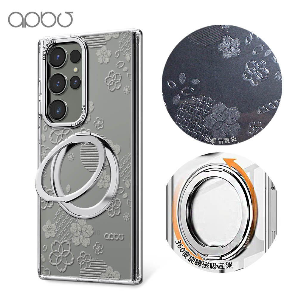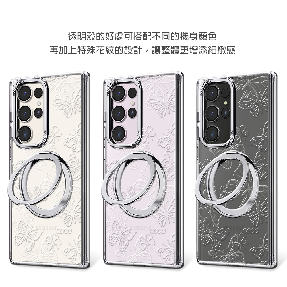 apbs 浮雕感360旋轉磁吸立架手機殼-透明蝶舞(S26/S25/S24/S23系列)
