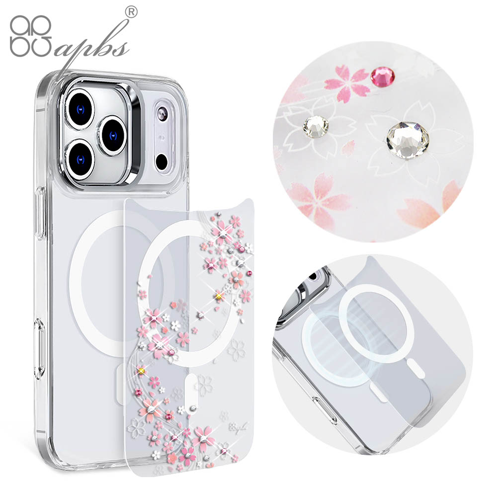 apbs可拆式磁吸片材彩鑽手機殼-天籟之櫻(iPhone 17/16/15/14/13系列)