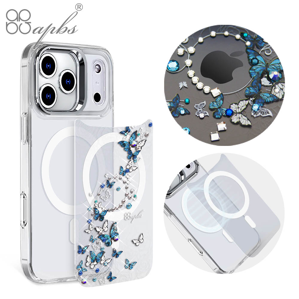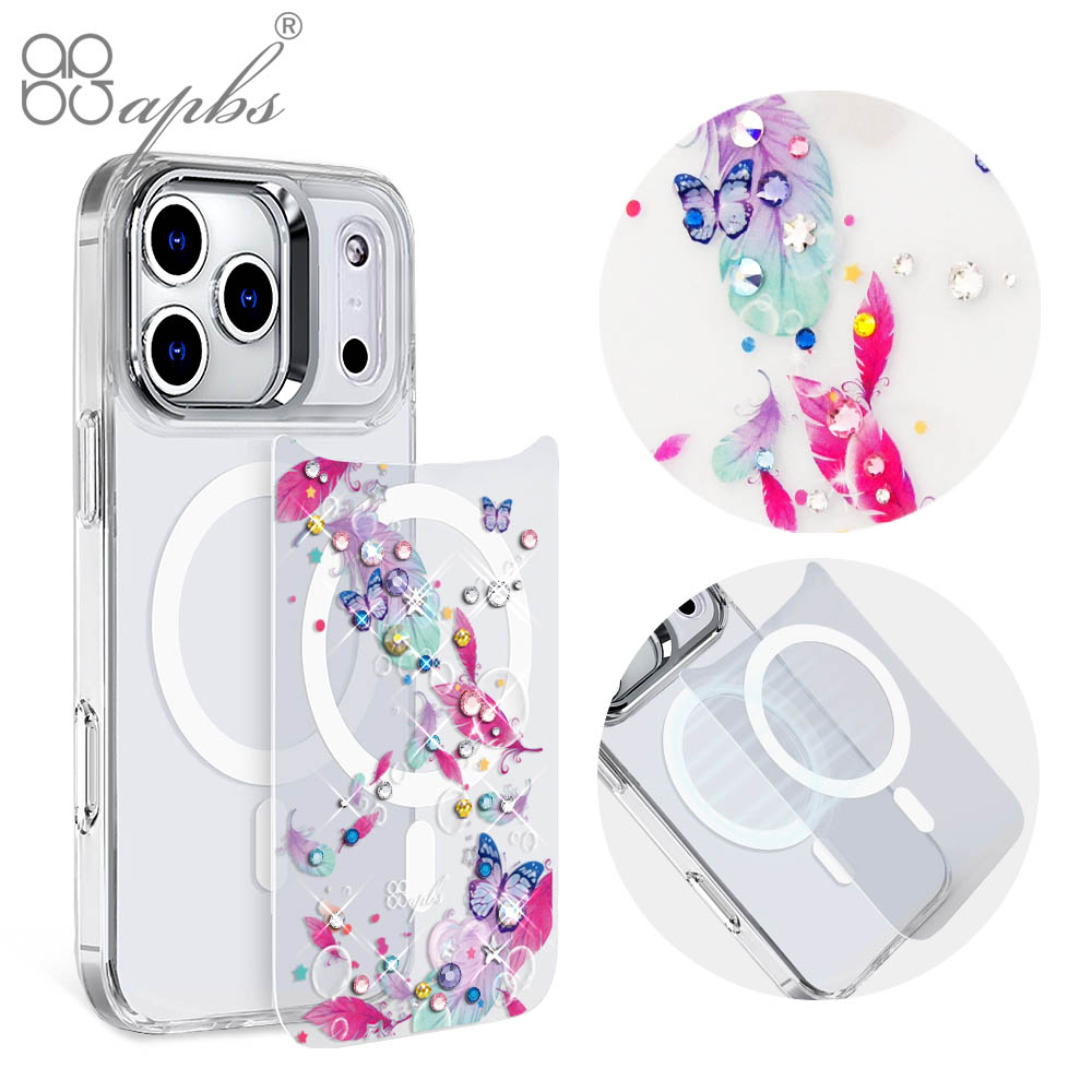 apbs可拆式磁吸片材彩鑽手機殼-彩櫻蝶舞(iPhone 17/16/15/14/13系列)