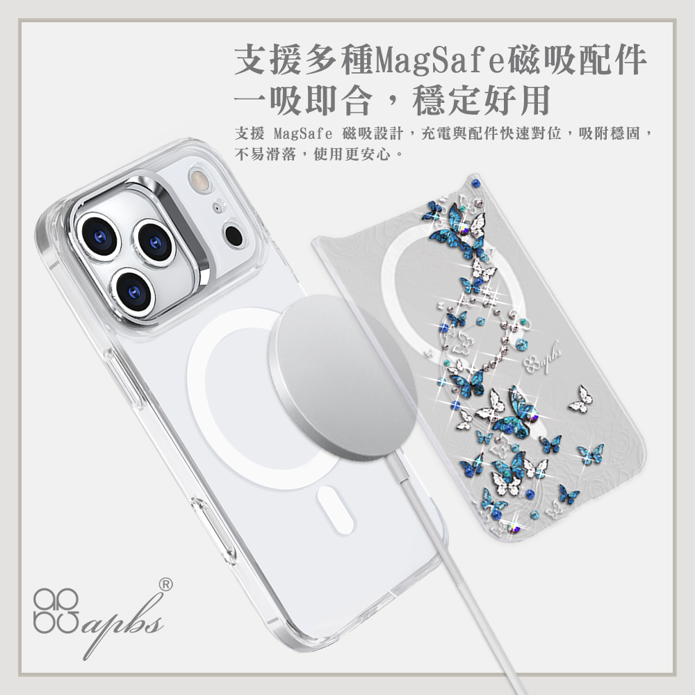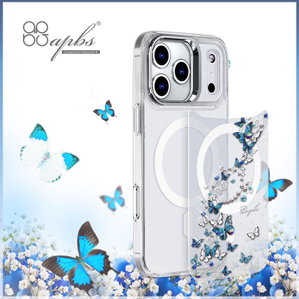 apbs浮雕感輕薄軍規防摔磁吸手機殼-透明蝶舞(iPhone 17/16/15/14/13/12/11系列)