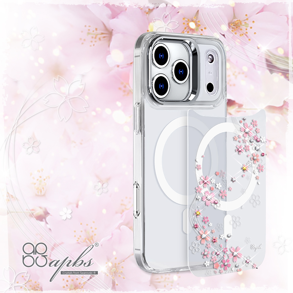 apbs可拆式磁吸片材彩鑽手機殼-天籟之櫻(iPhone 17/16/15/14/13系列)