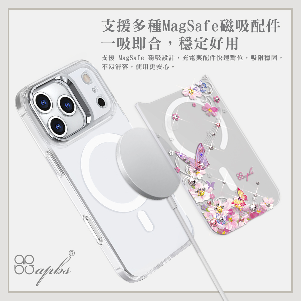 > 商品專區 > 軍規防摔 > 可拆式磁吸片材彩鑽 > apbs可拆式磁吸片材彩鑽手機殼-迷蝶香(iPhone 17/16/15/14/13系列)