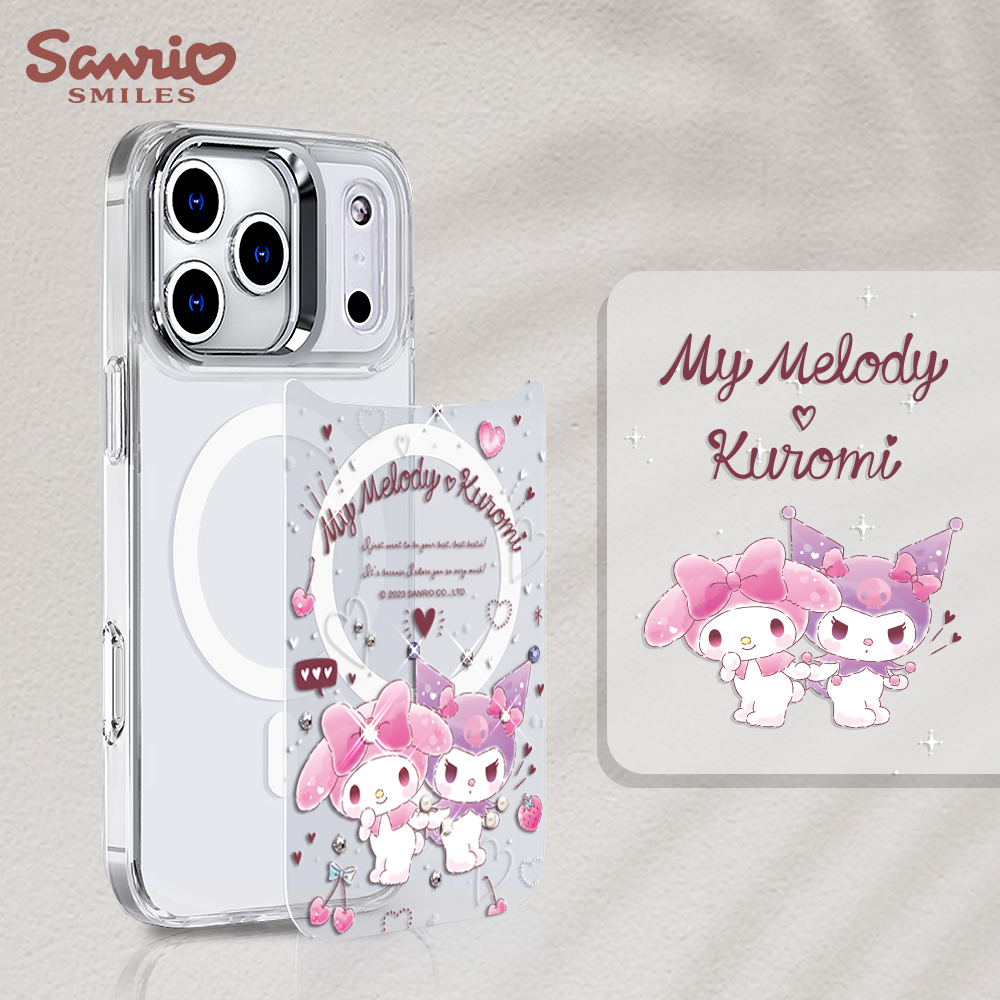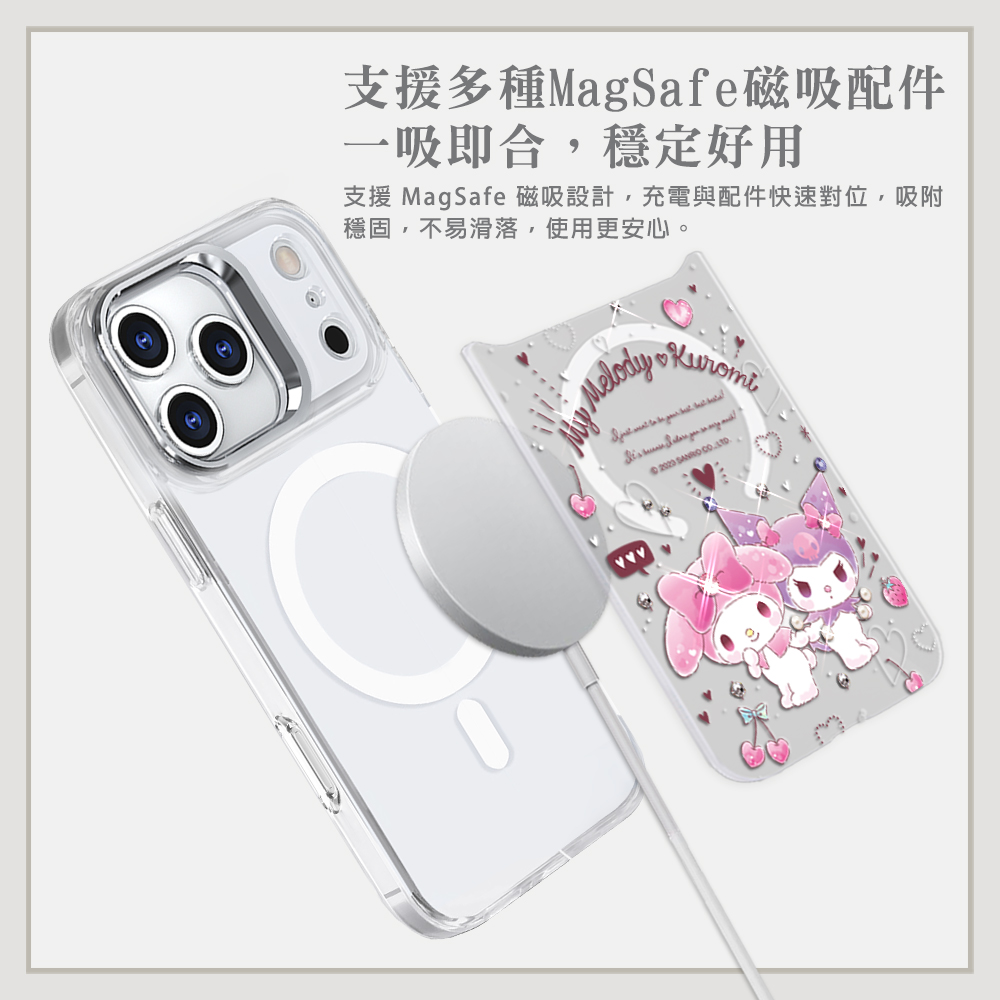 三麗鷗 抗黃化磁吸金屬框隱形立架殼-花語美樂蒂-電鍍銀(iPhone 16/15/14/13系列)