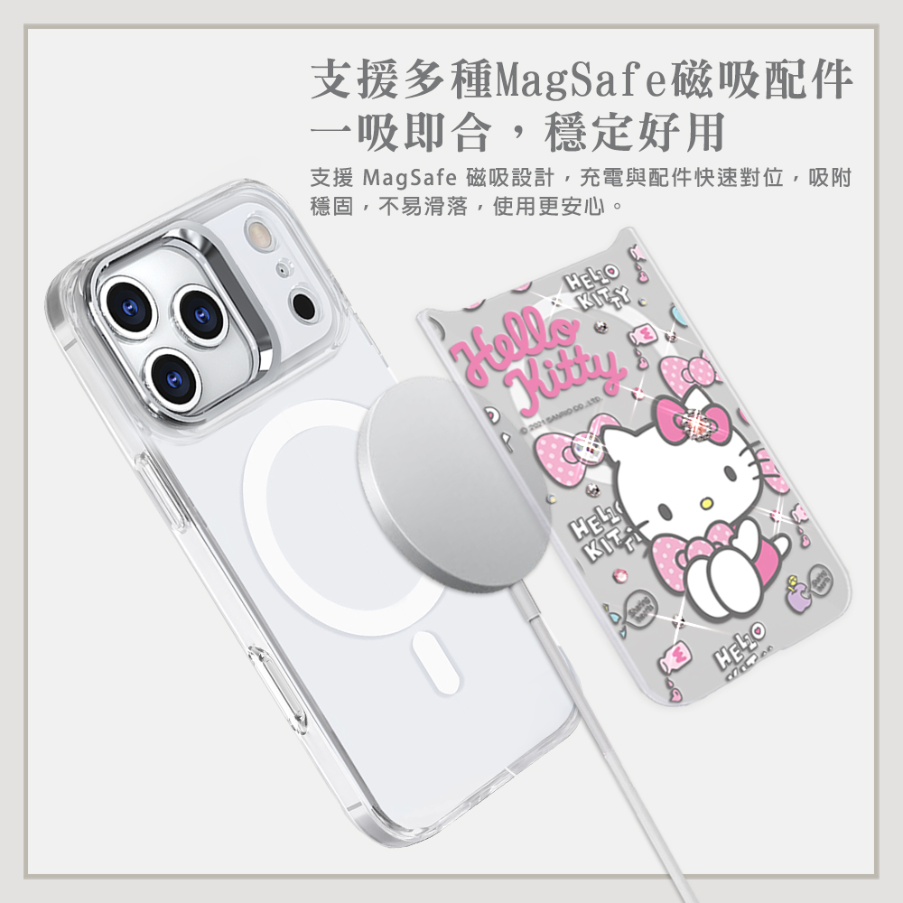三麗鷗 可拆式磁吸片材彩鑽手機殼-凱蒂粉幸運(iPhone 17/16/15/14/13系列)