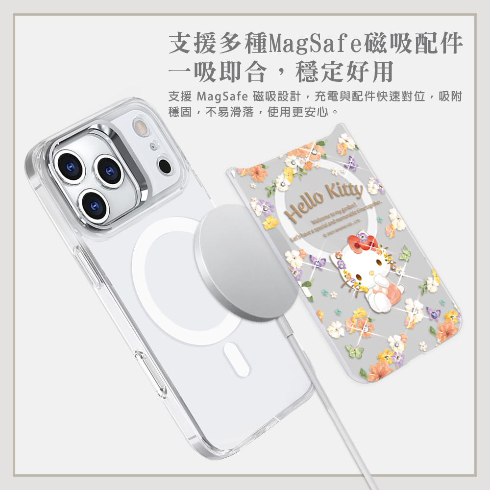 三麗鷗 防震雙料隱形立架磁吸手機殼-花語凱蒂(iPhone 17/16/15/14/13/12系列)