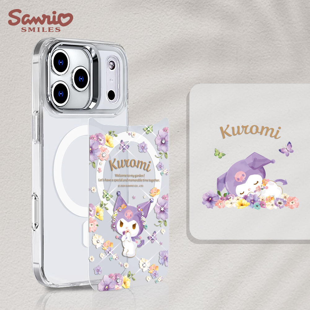 三麗鷗 抗黃化磁吸金屬框隱形立架殼-花語庫洛米-電鍍紫(iPhone 16/15/14/13系列)