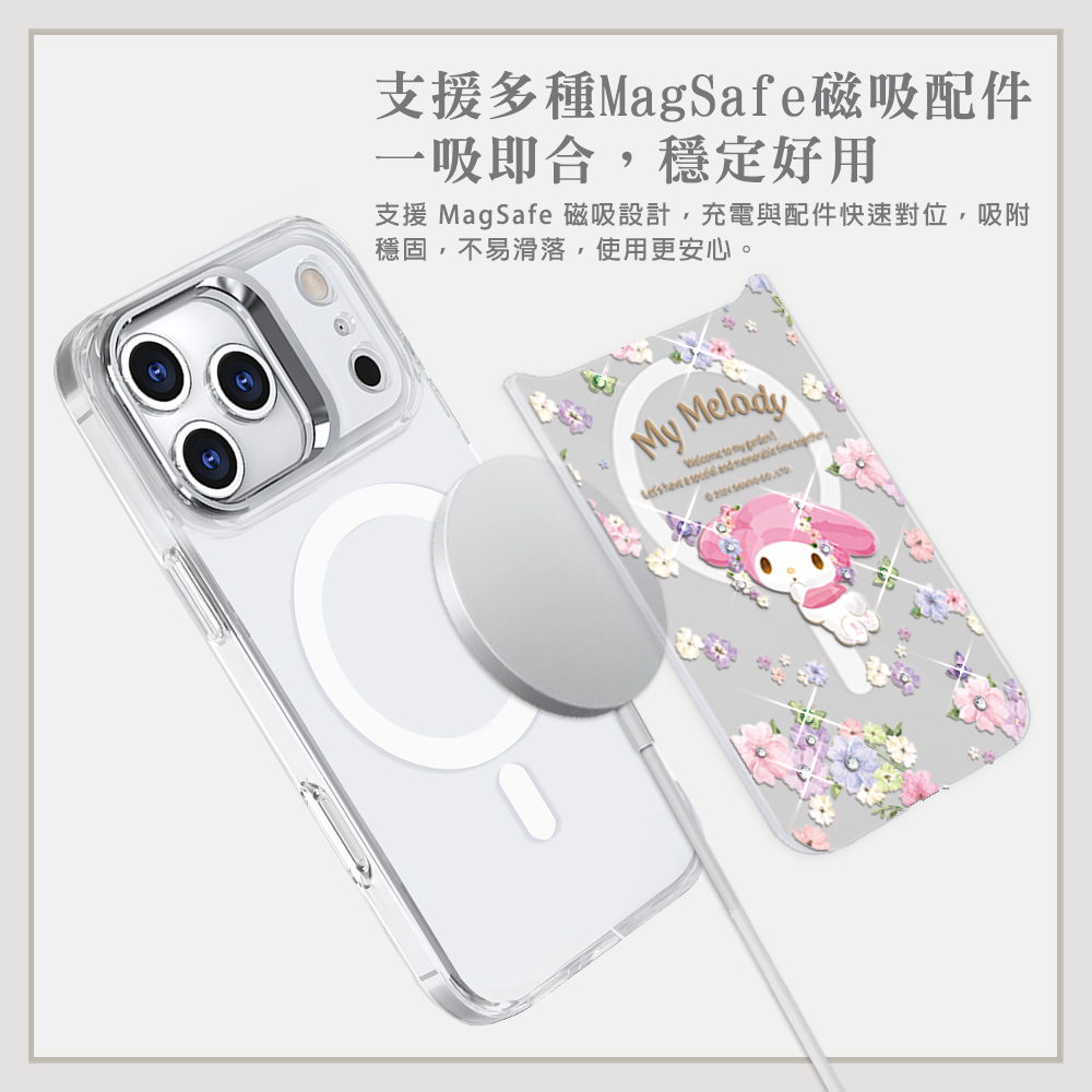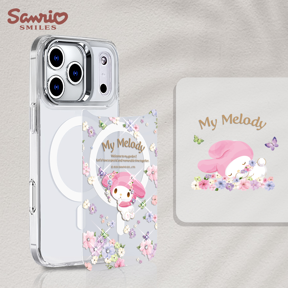三麗鷗 可拆式磁吸片材彩鑽手機殼-芬芳美樂蒂(iPhone 17/16/15/14/13系列)