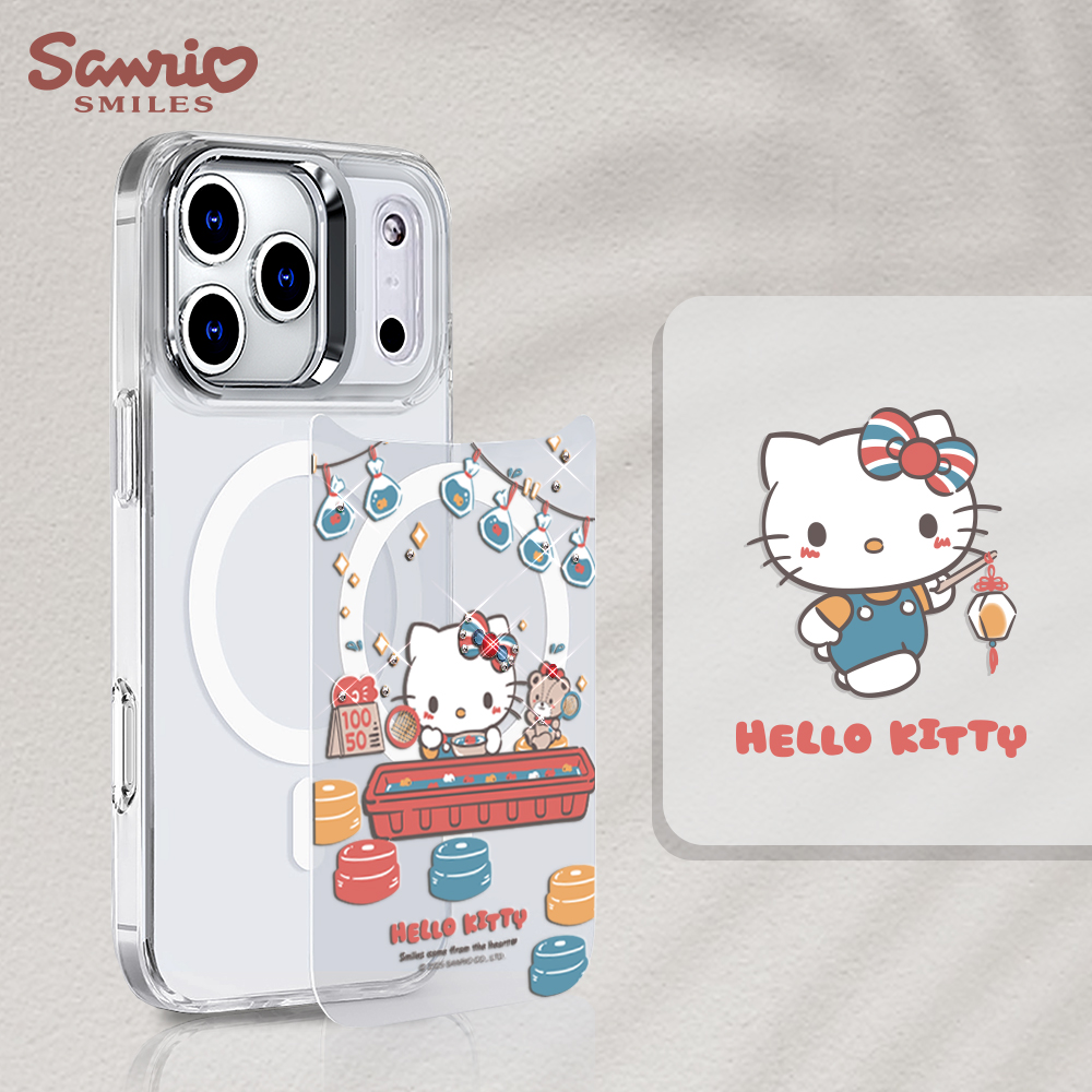 三麗鷗 可拆式磁吸片材彩鑽手機殼-撈金魚凱蒂(iPhone 17/16/15/14/13系列)