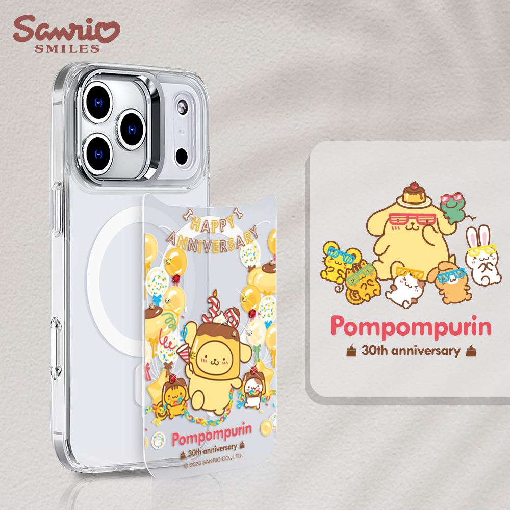 三麗鷗 可拆式磁吸片材彩鑽手機殼-布丁狗派對E(iPhone 17/16/15/14/13系列)