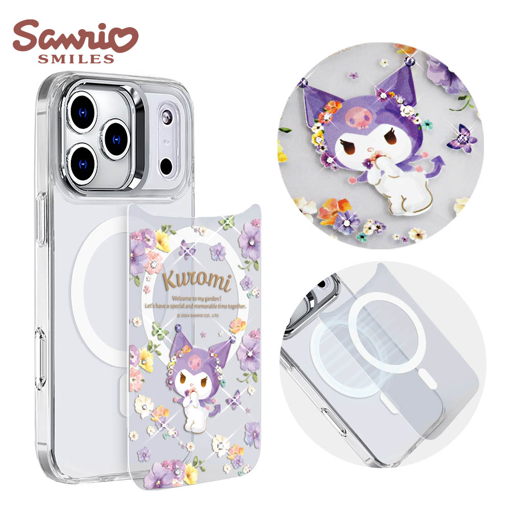 三麗鷗 抗黃化磁吸金屬框隱形立架殼-花語庫洛米-電鍍紫(iPhone 16/15/14/13系列)