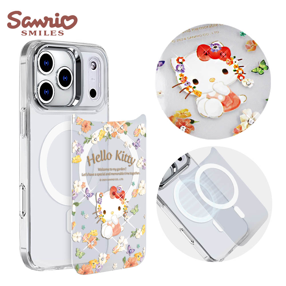 三麗鷗 防震雙料隱形立架磁吸手機殼-花語凱蒂(iPhone 17/16/15/14/13/12系列)