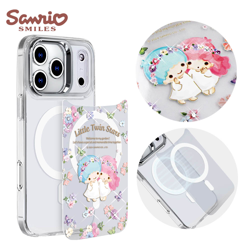 三麗鷗 防震雙料隱形立架磁吸手機殼-花語雙子星(iPhone 17/16/15/14/13/12系列)