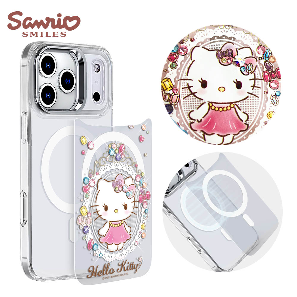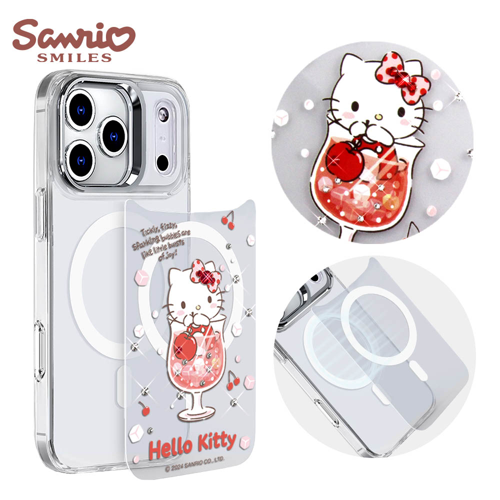 三麗鷗 可拆式磁吸片材彩鑽手機殼-撈金魚凱蒂(iPhone 17/16/15/14/13系列)