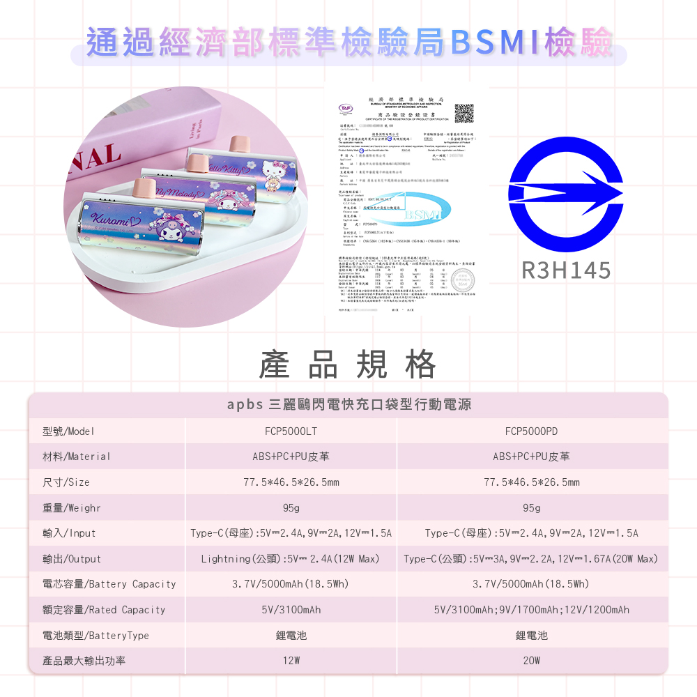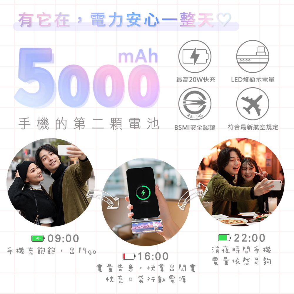 三麗鷗 閃電快充口袋行動電源 5000mAh-櫻花系列