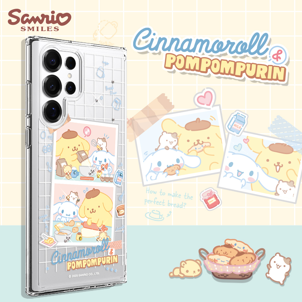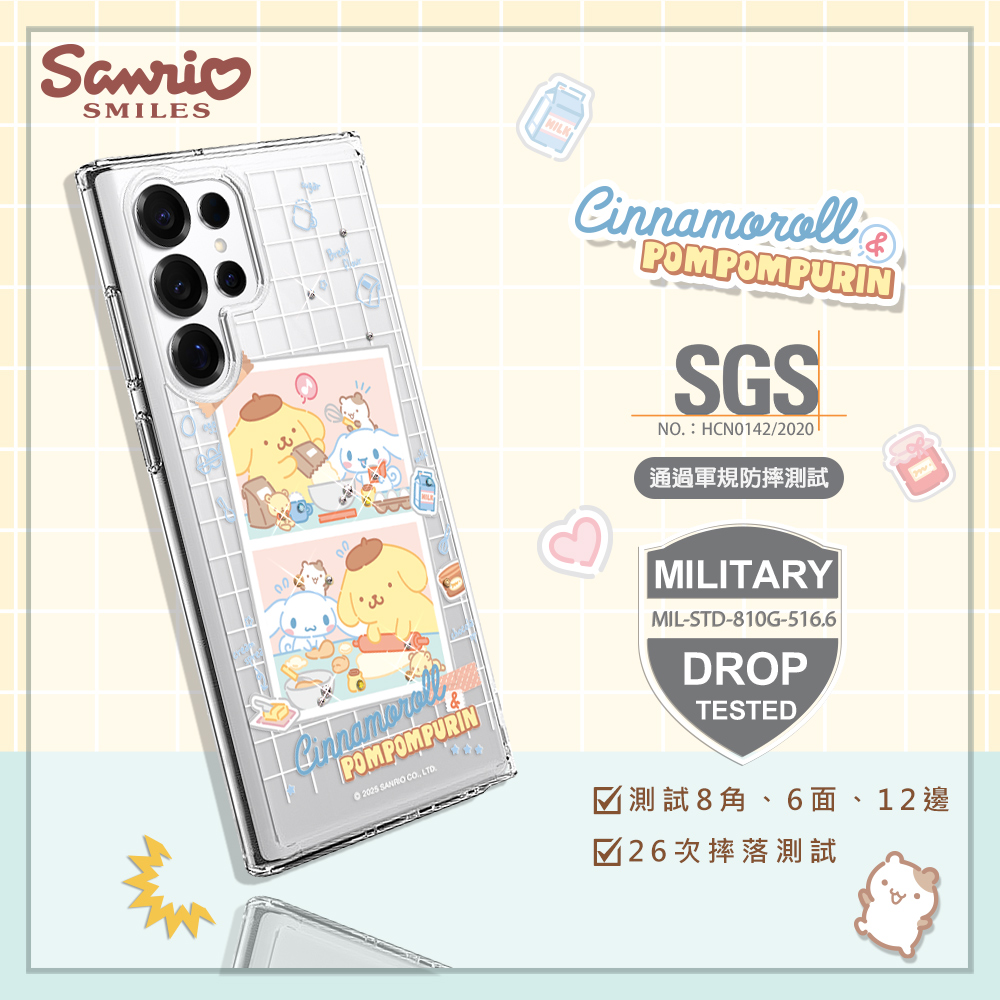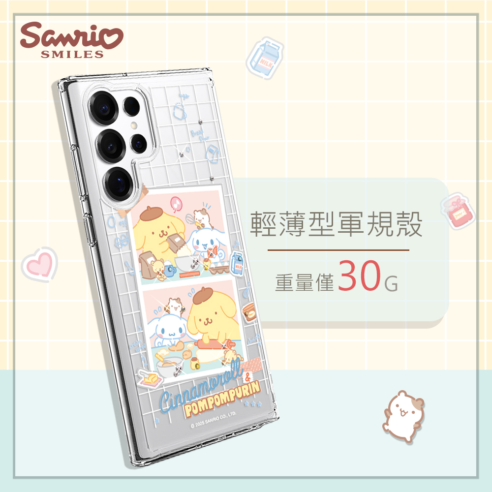 三麗鷗 輕透軍規防摔水晶彩鑽手機殼-烘焙大耳布丁D(S26/S25/S24/S23系列)