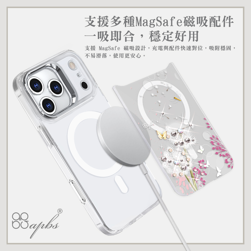 apbs可拆式磁吸片材彩鑽手機殼-珠落白玉(iPhone 17/16/15/14/13系列)