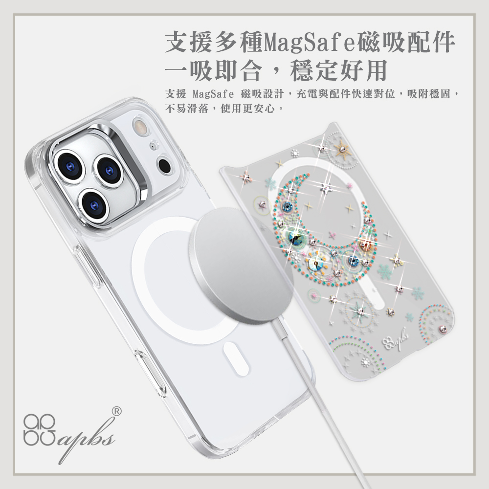 > 商品專區 > 軍規防摔 > 可拆式磁吸片材彩鑽 > apbs可拆式磁吸片材彩鑽手機殼-星月(iPhone 17/16/15/14/13系列)