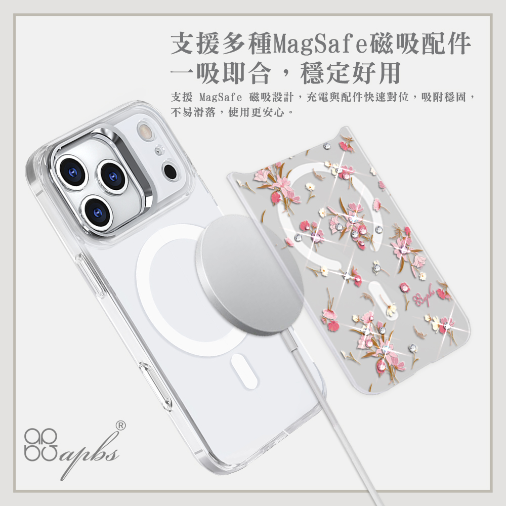 apbs可拆式磁吸片材彩鑽手機殼-小清新-玫瑰園(iPhone 17/16/15/14/13系列)