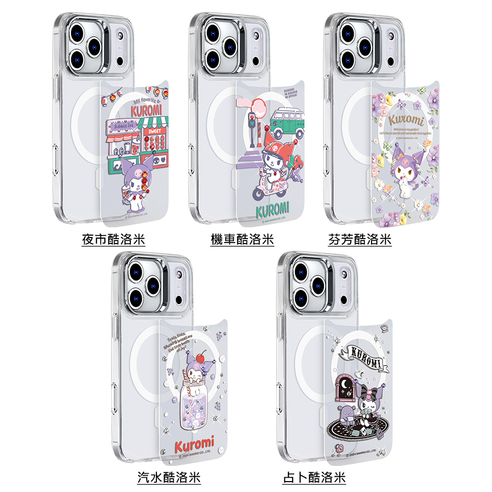 三麗鷗 抗黃化磁吸金屬框隱形立架殼-花語庫洛米-電鍍紫(iPhone 16/15/14/13系列)