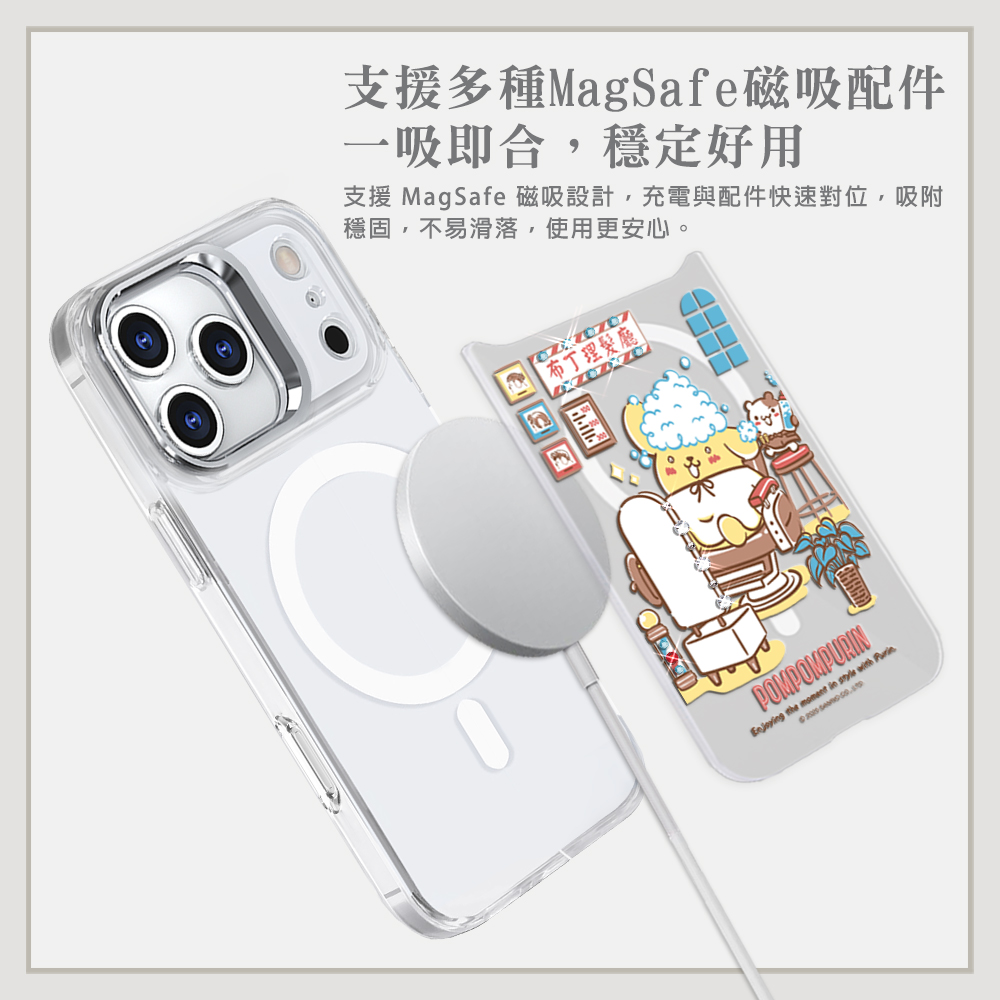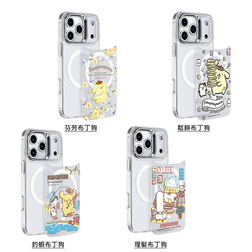 三麗鷗 抗黃化磁吸金屬框隱形立架殼-花語布丁狗-電鍍金(iPhone 16/15/14/13系列)