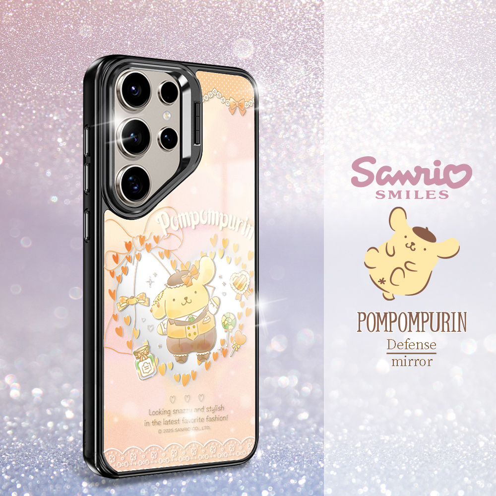 三麗鷗 軍規防摔合金框隱形立架鏡面磁吸手機殼-甜心布丁狗(S26/S25/S24/S23系列)