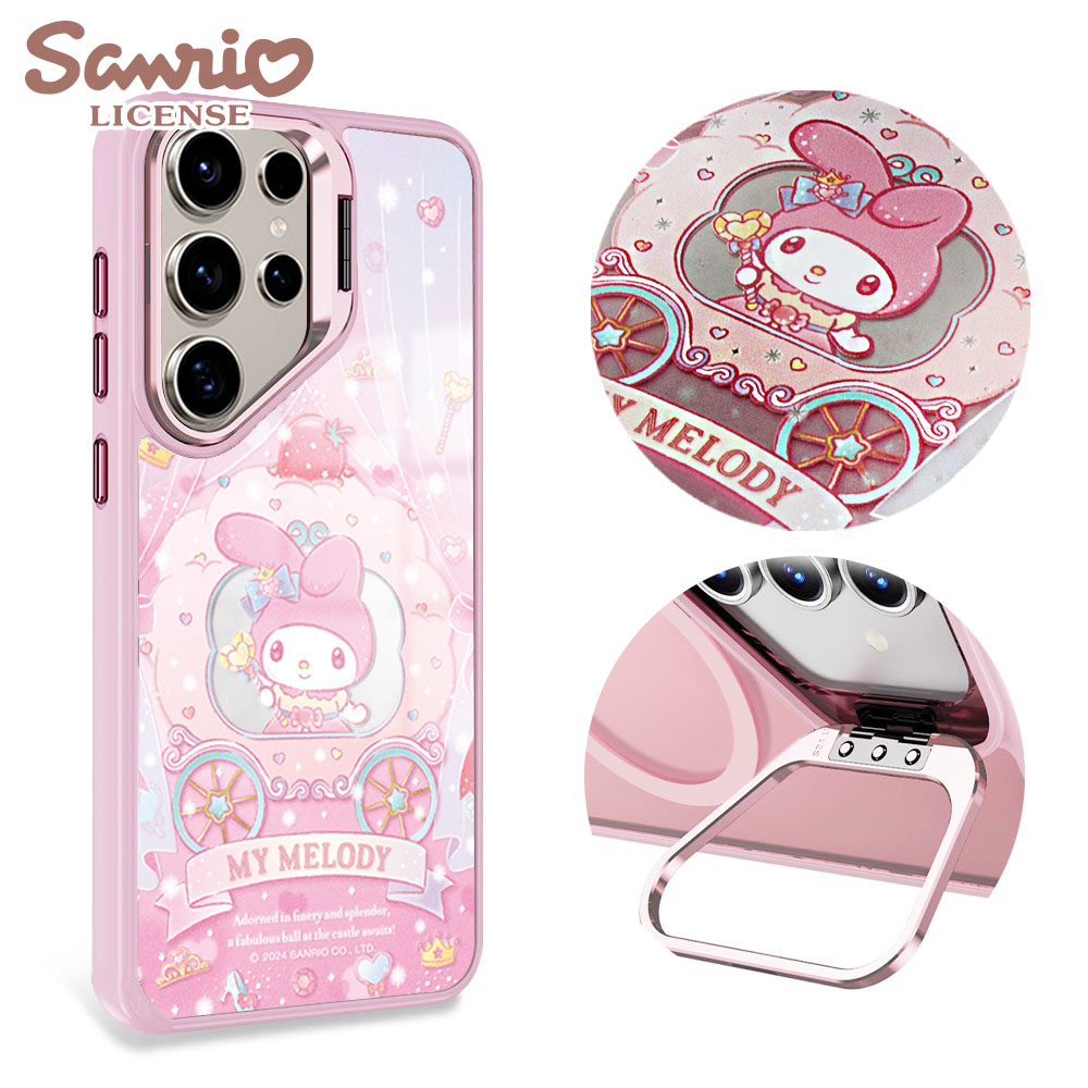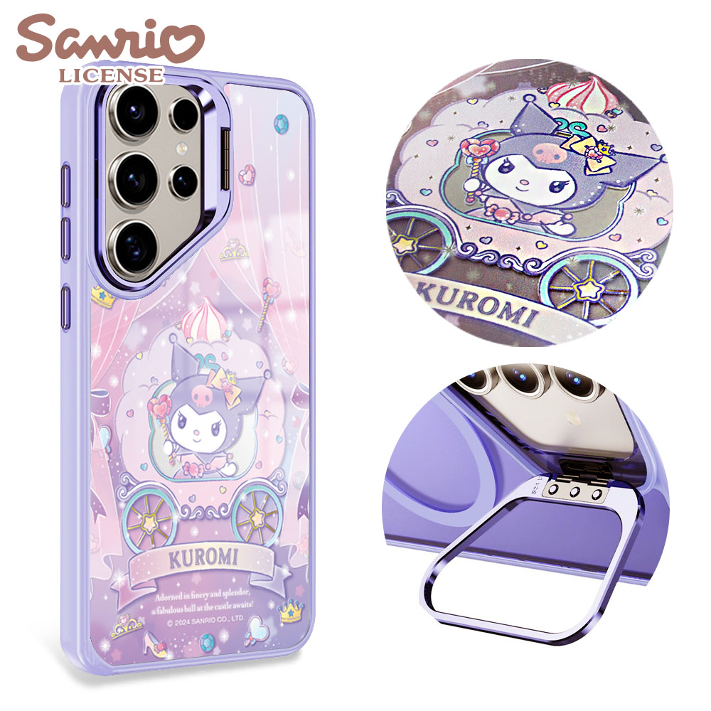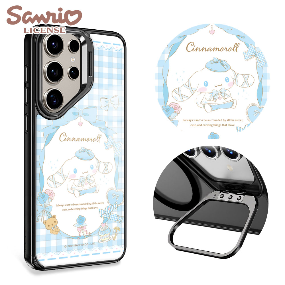 三麗鷗 軍規防摔合金框隱形立架鏡面磁吸手機殼-蕾絲酷洛米E(S26/S25/S24/S23系列)
