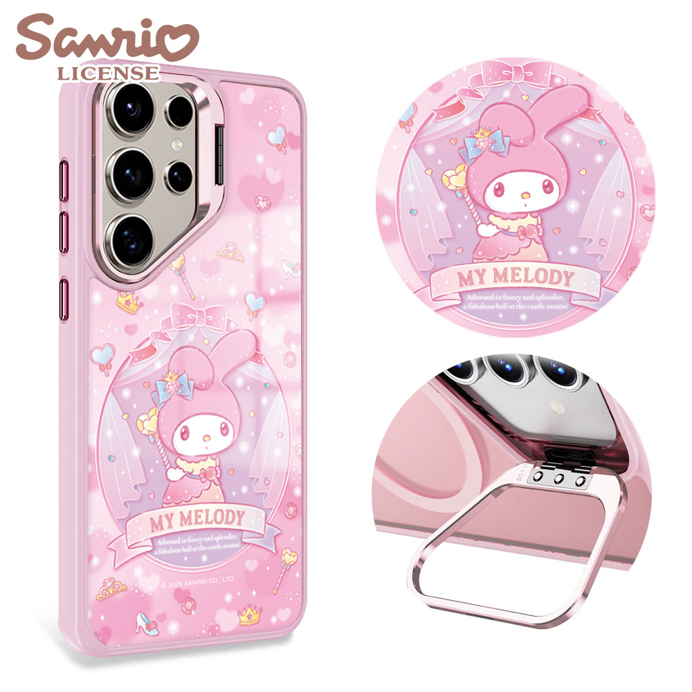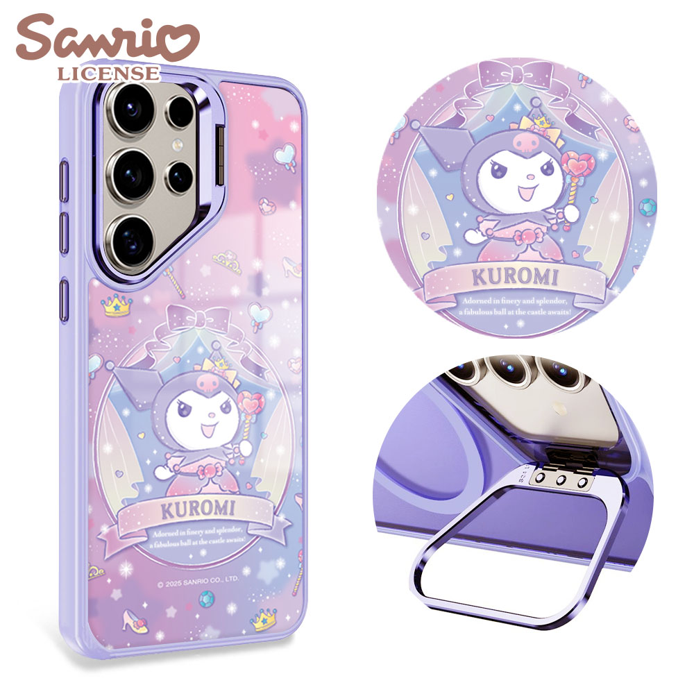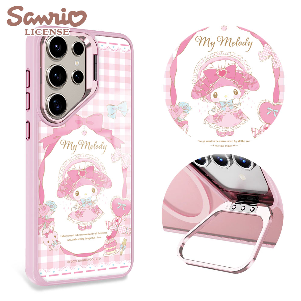 三麗鷗 軍規防摔合金框隱形立架鏡面磁吸手機殼-蕾絲酷洛米D(S26/S25/S24/S23系列)