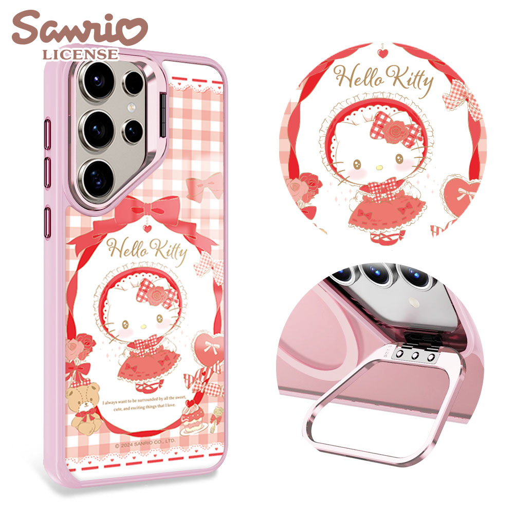 三麗鷗 軍規防摔合金框隱形立架鏡面磁吸手機殼-甜心凱蒂(S26/S25/S24/S23系列)