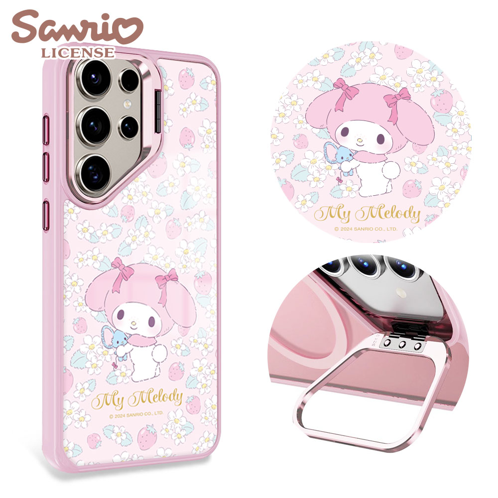 三麗鷗 軍規防摔合金框隱形立架手機殼-草莓美樂蒂(S26/S25/S24/S23系列)