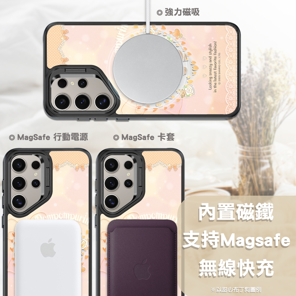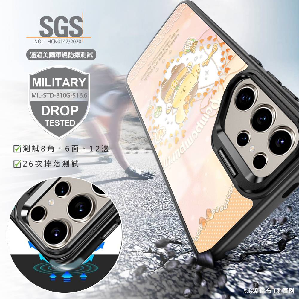 三麗鷗 軍規防摔合金框隱形立架手機殼-點心布丁狗(S26/S25/S24/S23系列)